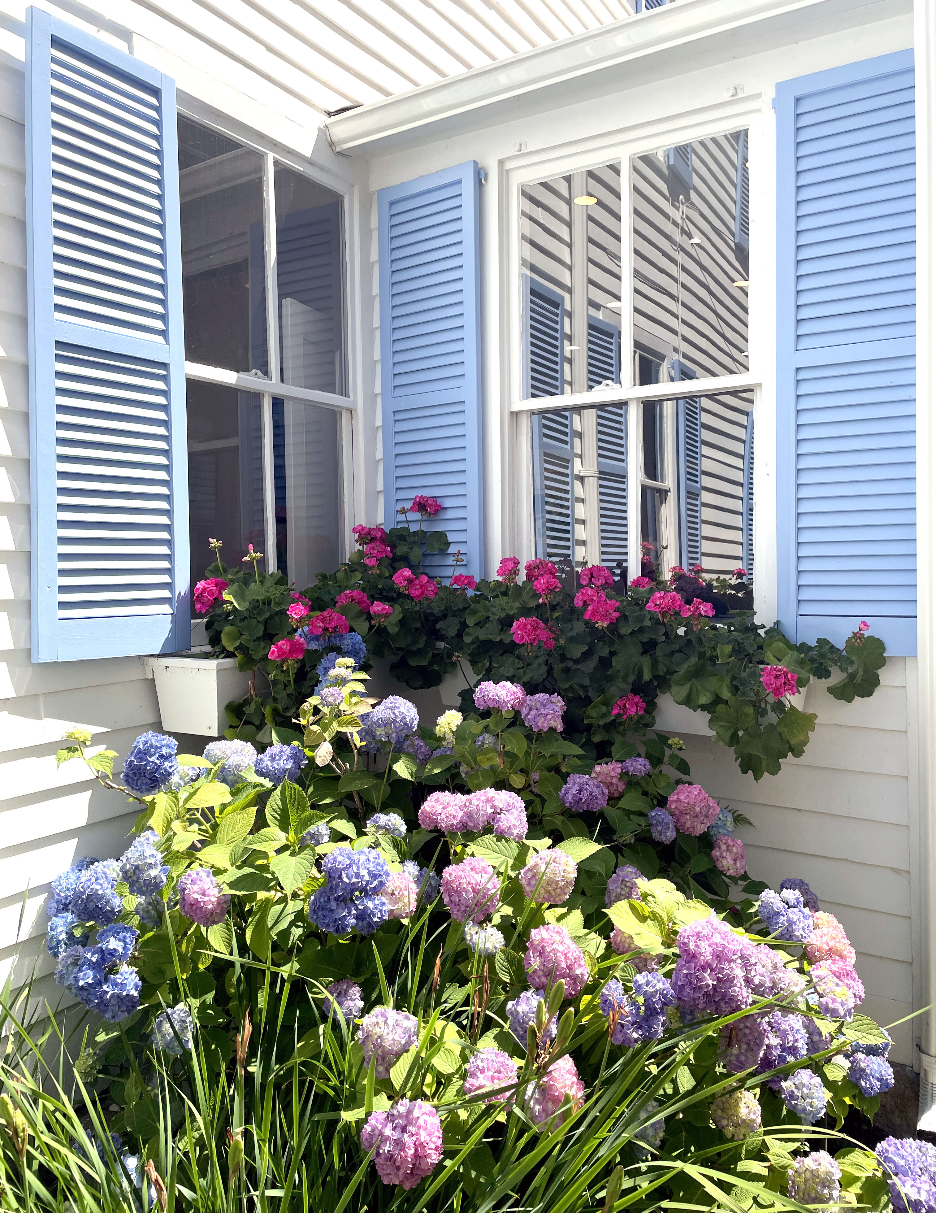 Happy July! June’s Summer Solstice on the 21st gave us the longest day of the year. I enjoyed an early dawn breakfast in the garden as I gazed out at the sailboats in the harbor. The air was crisp; the day was full of promises it kept. Not only was it the longest day of the year, but it was the happiest. My appreciation for the life I’m living, at age 80, turned into awe. All the rich experiences that brought me to this spiritual awareness continuously support, nurture and sustain my soul. I’m savoring all the new buds on the rosebushes, the commingling of their delicate shades of pink with the hot pink geraniums and the paler tones of the peonies. Let joy be unrestrained!